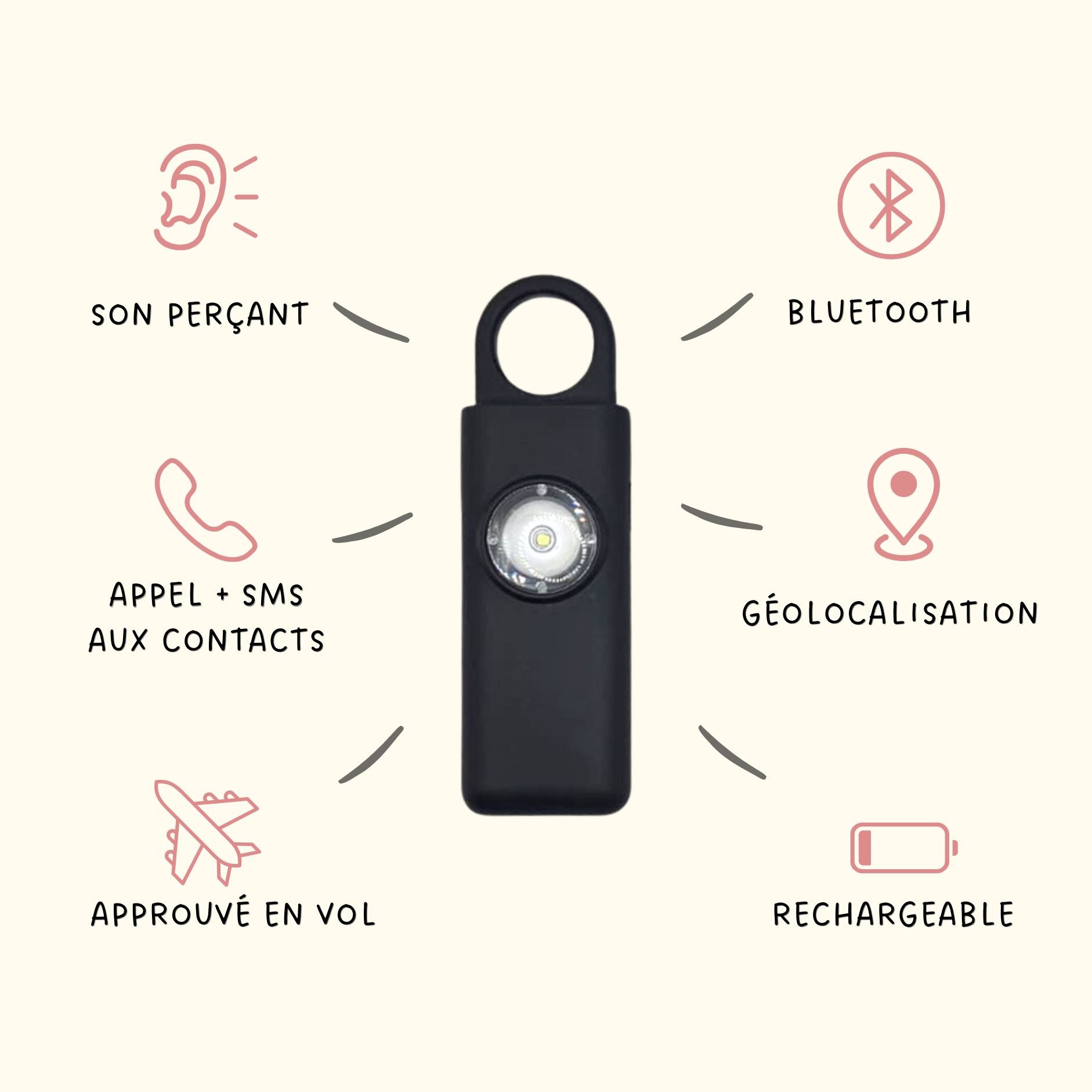 L'alarme émet un son perçant de 130 décibels, suffisamment puissant pour attirer l'attention et demander de l'aide.