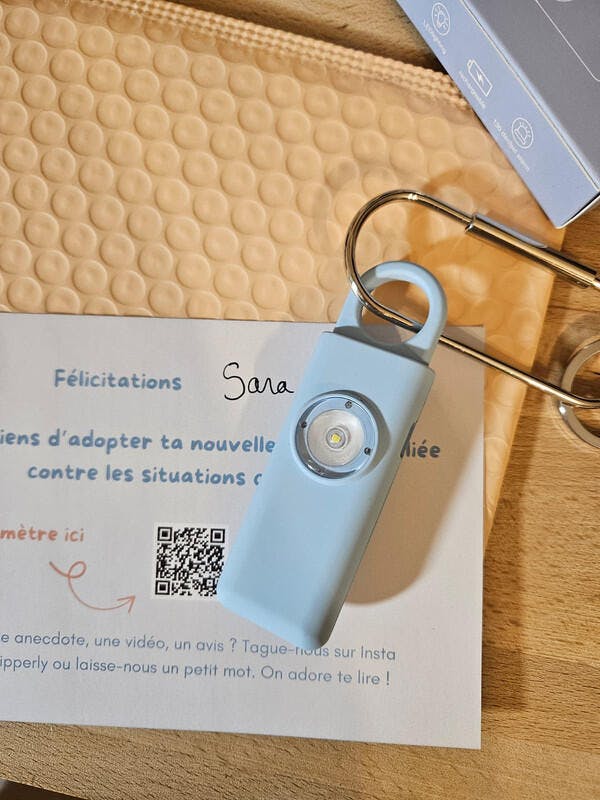 Accroche Bipperly à ton sac pour y accéder rapido. Il suffit de tirer sur la goupille et hop, l'alarme anti relou est lancée !